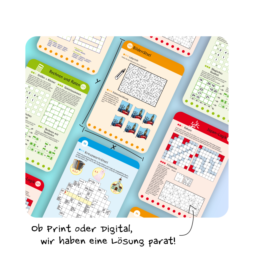 Wählen Sie in unserem Rätselshop aus über 100 Rätseltypen das Rätsel für Ihr Print-Projekt aus. Die Layoutdaten stehen Ihnen direkt nach dem Kauf zum Download zur Verfügung.