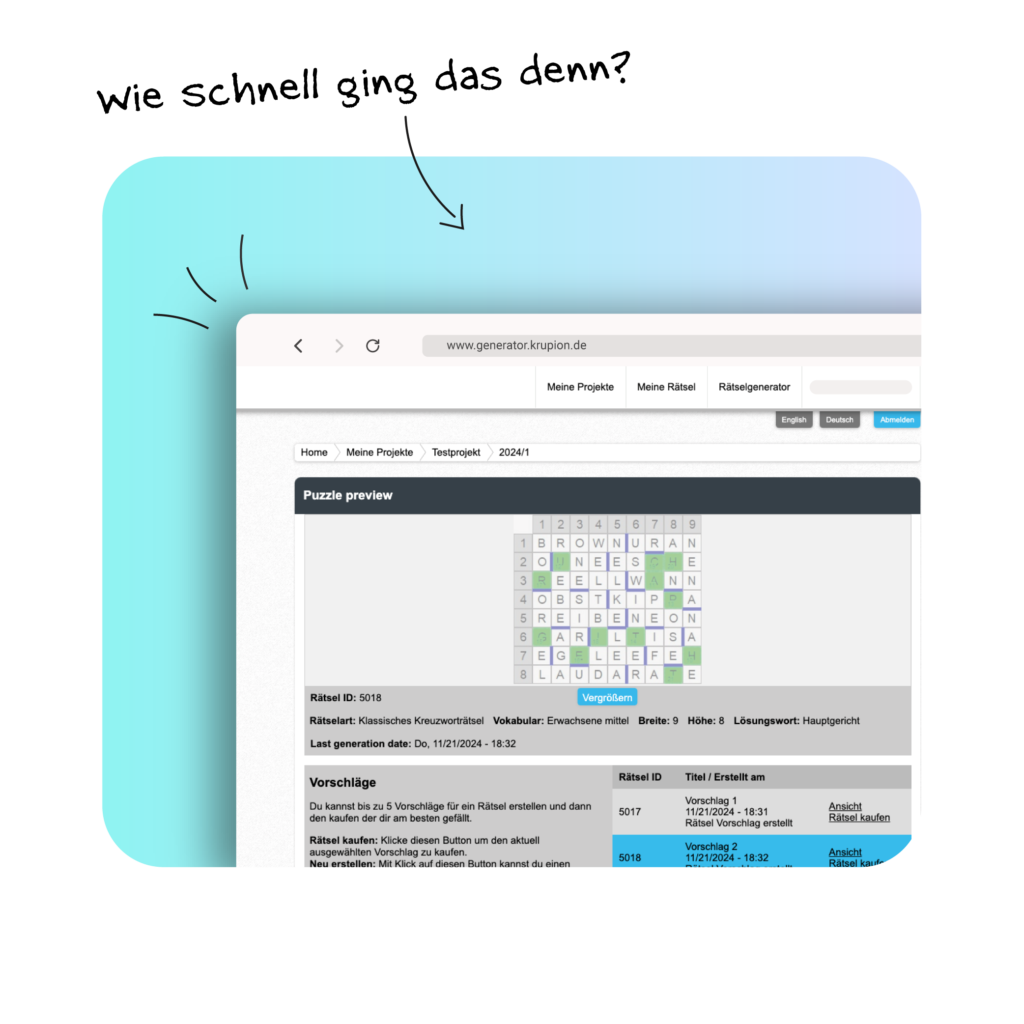 Mit unserem innovativen Generator können Sie schnell und einfach individuelle Rätsel erstellen. Mit vielseitigen Vorlagen und flexiblen Anpassungsmöglichkeiten erstellen Sie schnell und einfach individuelle Rätselinhalte – ganz ohne technische Vorkenntnisse.