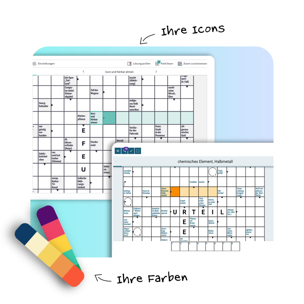 Unsere White-Label-Lösungen ermöglichen individuell gestaltete Rätsel, die Ihre Marke perfekt widerspiegeln. Von eigenen Designs, Icons und Schriften über Farben und Logos bis hin zu maßgenschneiderten Funktionalitäten – wir integrieren Ihr Branding nahtlos und schaffen ein einzigartiges Nutzererlebnis, das Kunden begeistert und Ihre Marke stärkt.